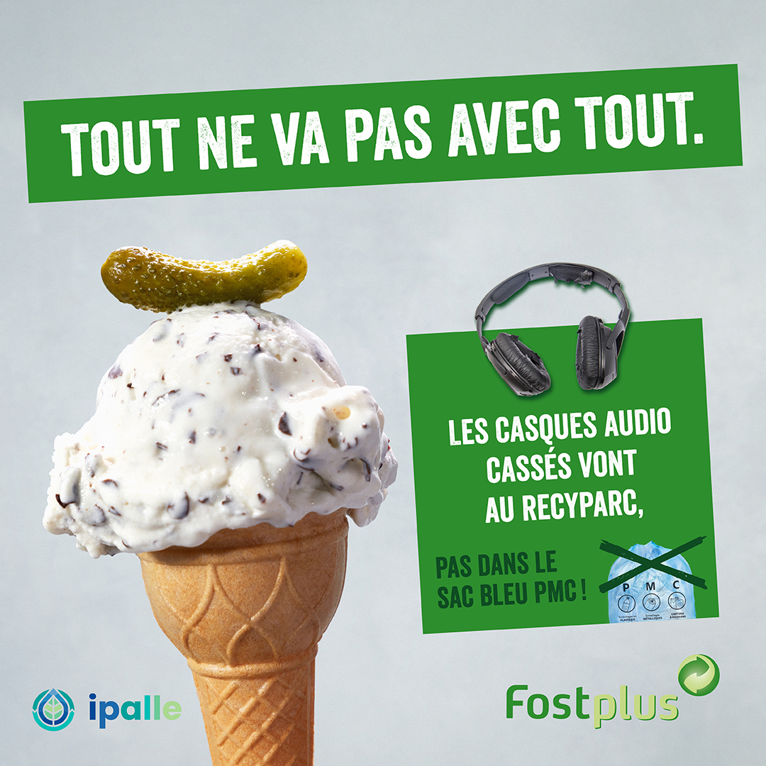 La campagne « Tout ne va pas avec tout » repose sur un concept simple mais on interpellant : certaines combinaisons ne vont pas ensemble, et ça vaut aussi pour les déchets et leur destination.