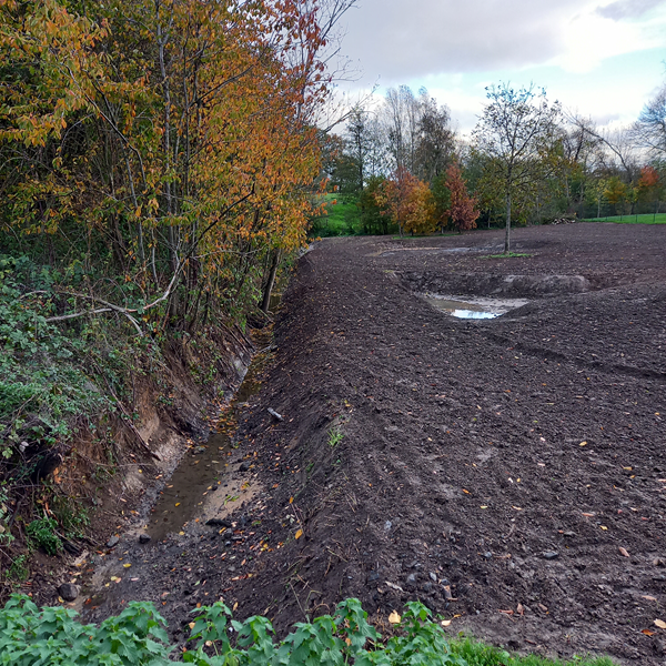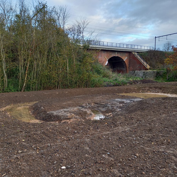 Un plan de restauration écologique a été établi pour la zone qui se situe entre la station d’épuration d’Enghien et le chemin de fer. Ce plan consiste en la création de 2 mares, le reprofilage d’un fossé existant, le semis d’une prairie de fauche à grand intérêt biologique et le semis d’une prairie fleurie sur le talus du chemin de fer.