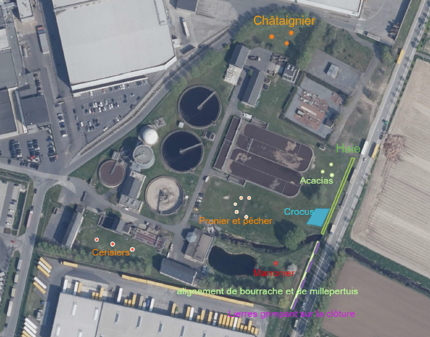 Deux vergers hautes tiges de 26 arbres chacun (pommiers, poiriers, pruniers et cerisiers) ont été plantés à côté des stations d’épuration de Barry et Blaton. Un troisième de 16 arbre a quant à lui été planté à la station d’épuration de Beloeil.