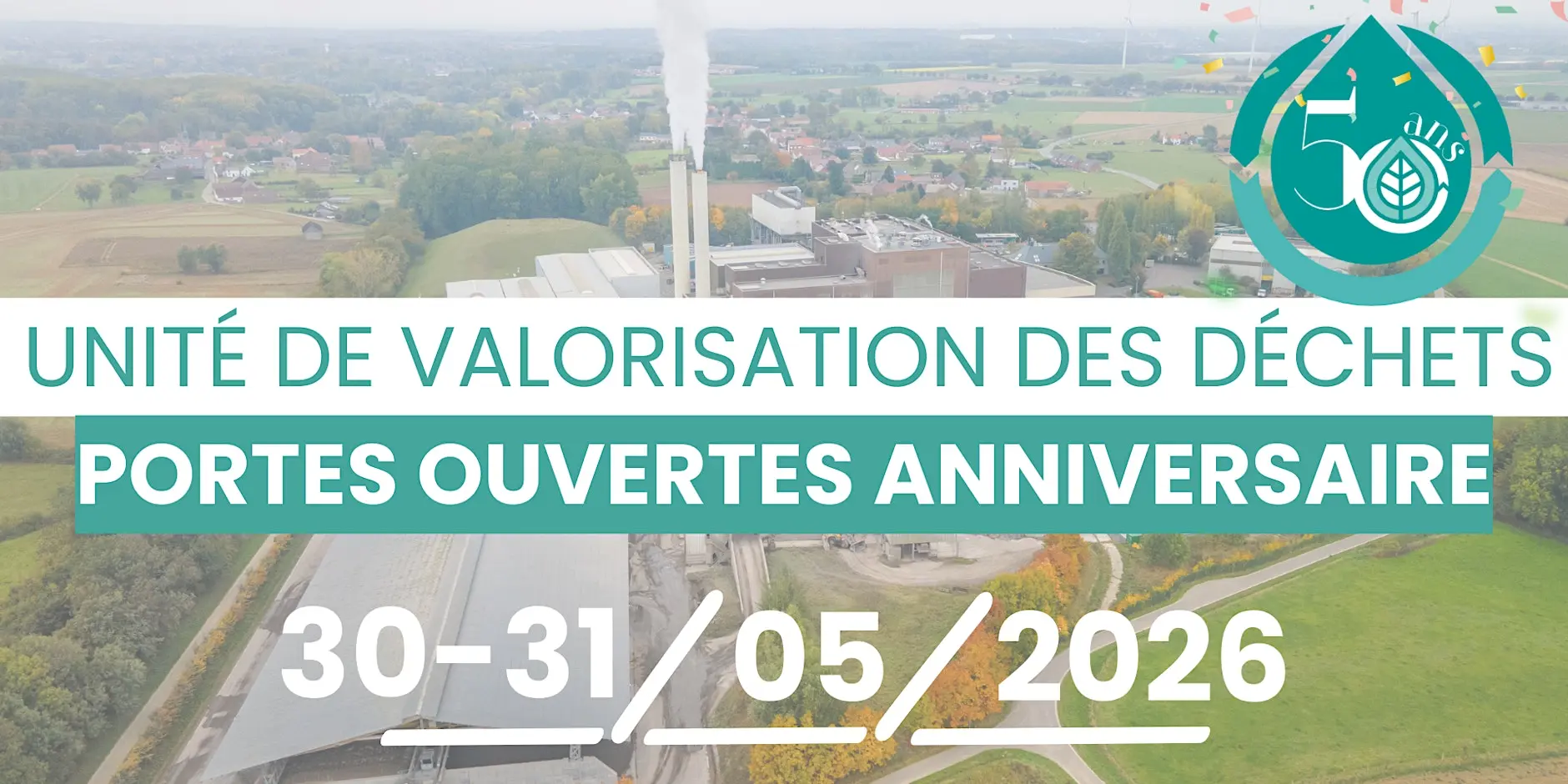 Pour son 50ième anniversaire, IPALLE vous ouvre à nouveau les portes de son Unité de Valorisation Energétique de Thumaide. A cette occasion, votre intercommunale vous propose de découvrir les coulisses de ses nombreuses activités de façon inédite. Les 30 et 31 mai, rejoignez-nous pour un week-end festif !