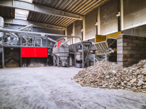 Afin d’assurer la qualité du produit recyclé, un premier hall est spécifiquement dédié au stockage, pré-broyage et tri des déchets entrants. Les matières comme les ferrailles ou le papier sont extraites pour être valorisées séparément. Un second hall sert d’espace de stockage pour le produit fini.