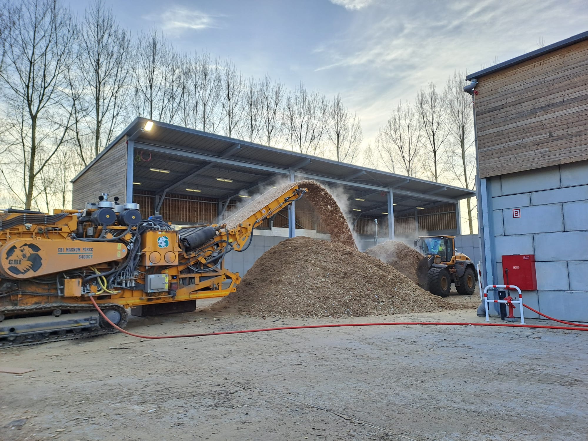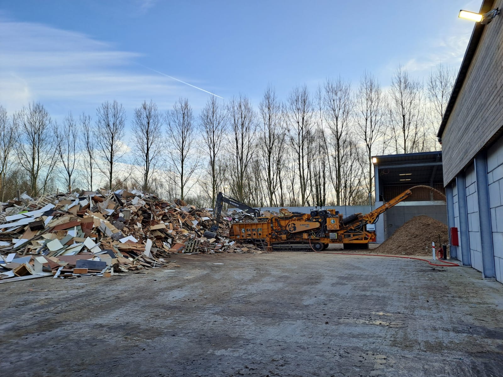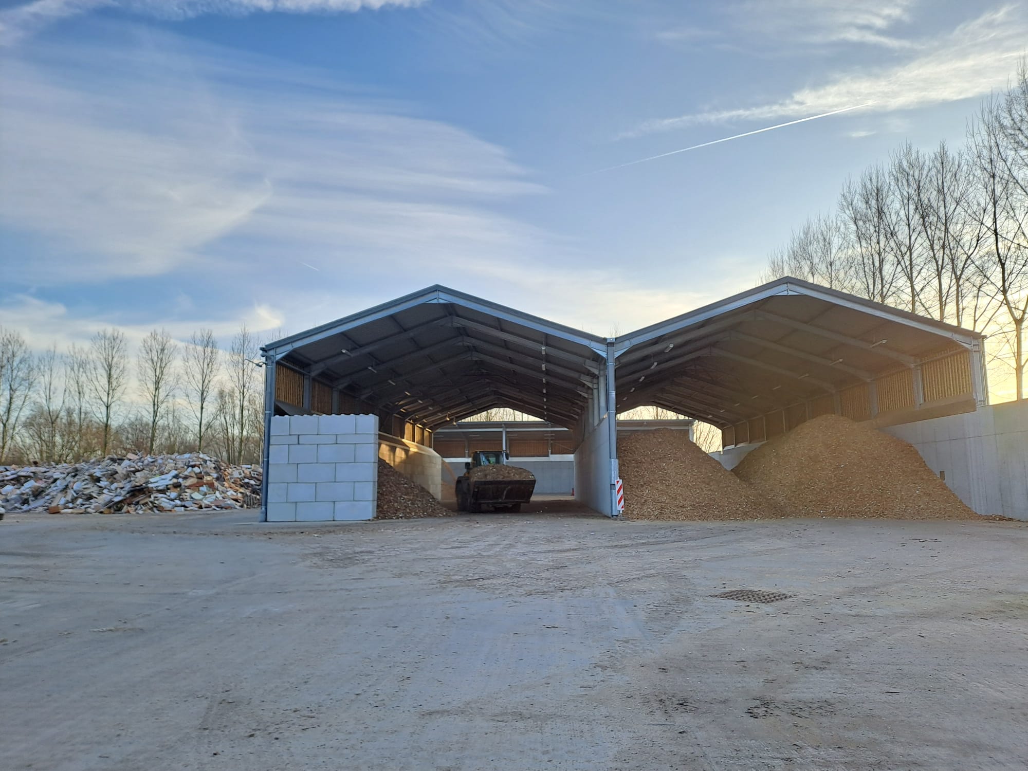Il y a un an, IPALLE met en fonctionnement une dalle de regroupement et de prétraitement de bois. Située à Ath, cette installation permet de fabriquer des plaquettes à partir de bois récupérés sur les recyparcs, déchet qui ne peut plus être recyclé et qui servira de combustible.