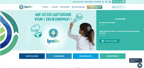 Entièrement refait en 2023, le site web d’IPALLE facilite la navigation et fournit aussi plus d’autonomie pour nos équipes dans la construction et l’animation des pages. Le site est l’outil de communication par excellence d’IPALLE. Actualités, horaires, détail des services, historique… Il centralise toutes les informations nécessaires et intéressantes pour les citoyens, et ce pour tous les secteurs d’activité de l’intercommunale. Il est également en constante évolution, de manière à rester le plus complet.
