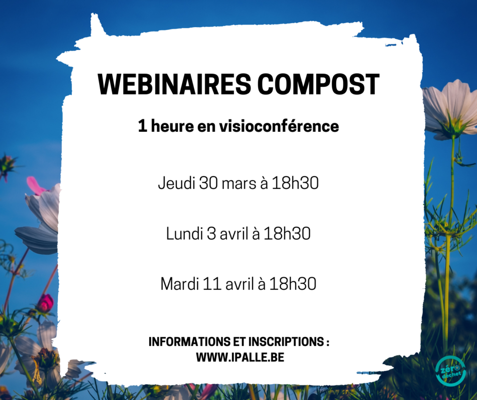 Plus d’informations : Service Prévention/Zéro Déchet : 069/84.59.88 – 071/59.96.12 ou compost@ipalle.be.