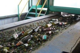 Après enlèvement des impuretés, le verre est brisé en éclats de quelques centimètres. Grâce à des séparateurs magnétiques, les métaux sont retirés. Le verre est ensuite fondu dans des fours pour redevenir de nouvelles bouteilles ou de nouveaux bocaux en verre.